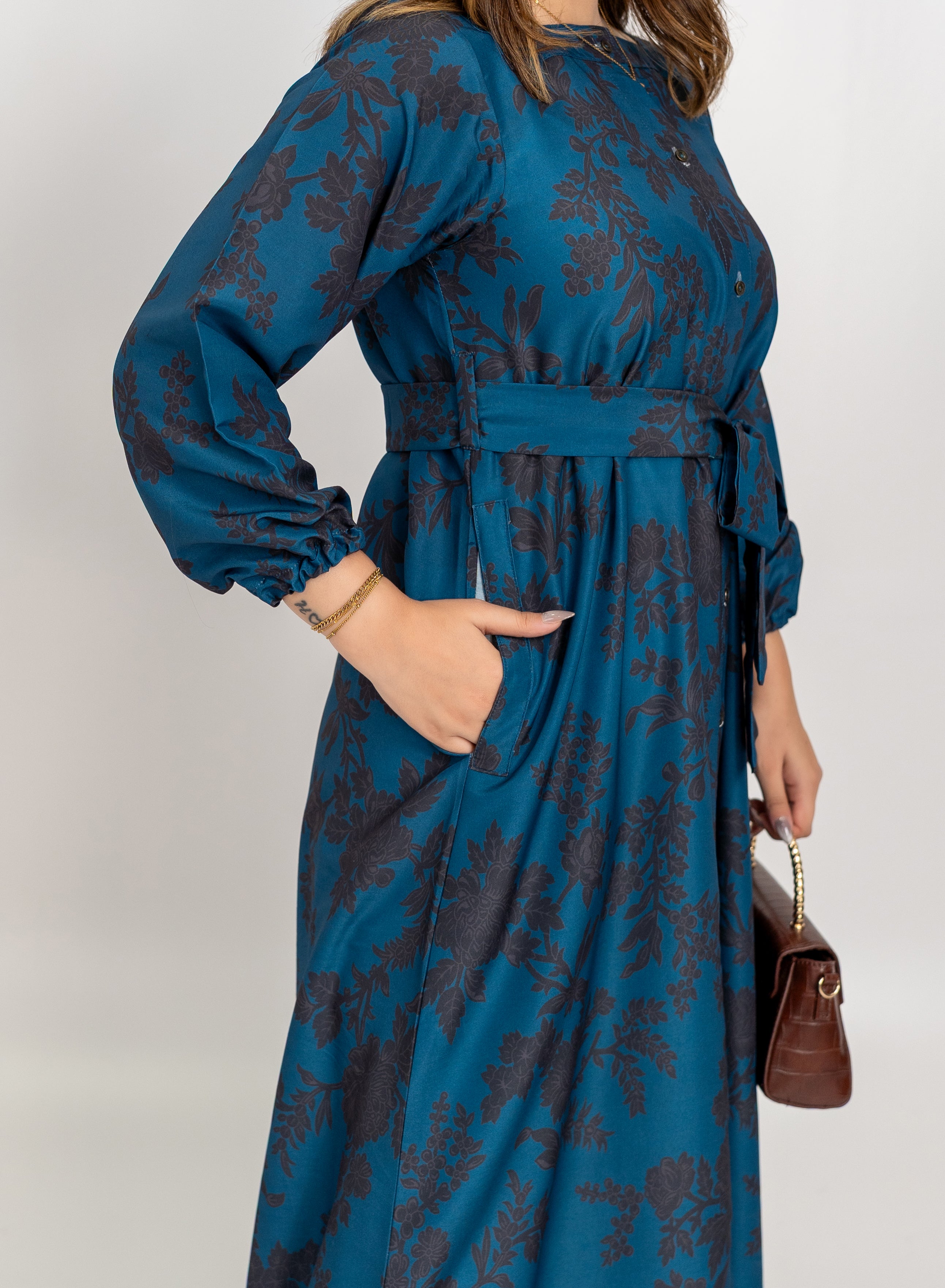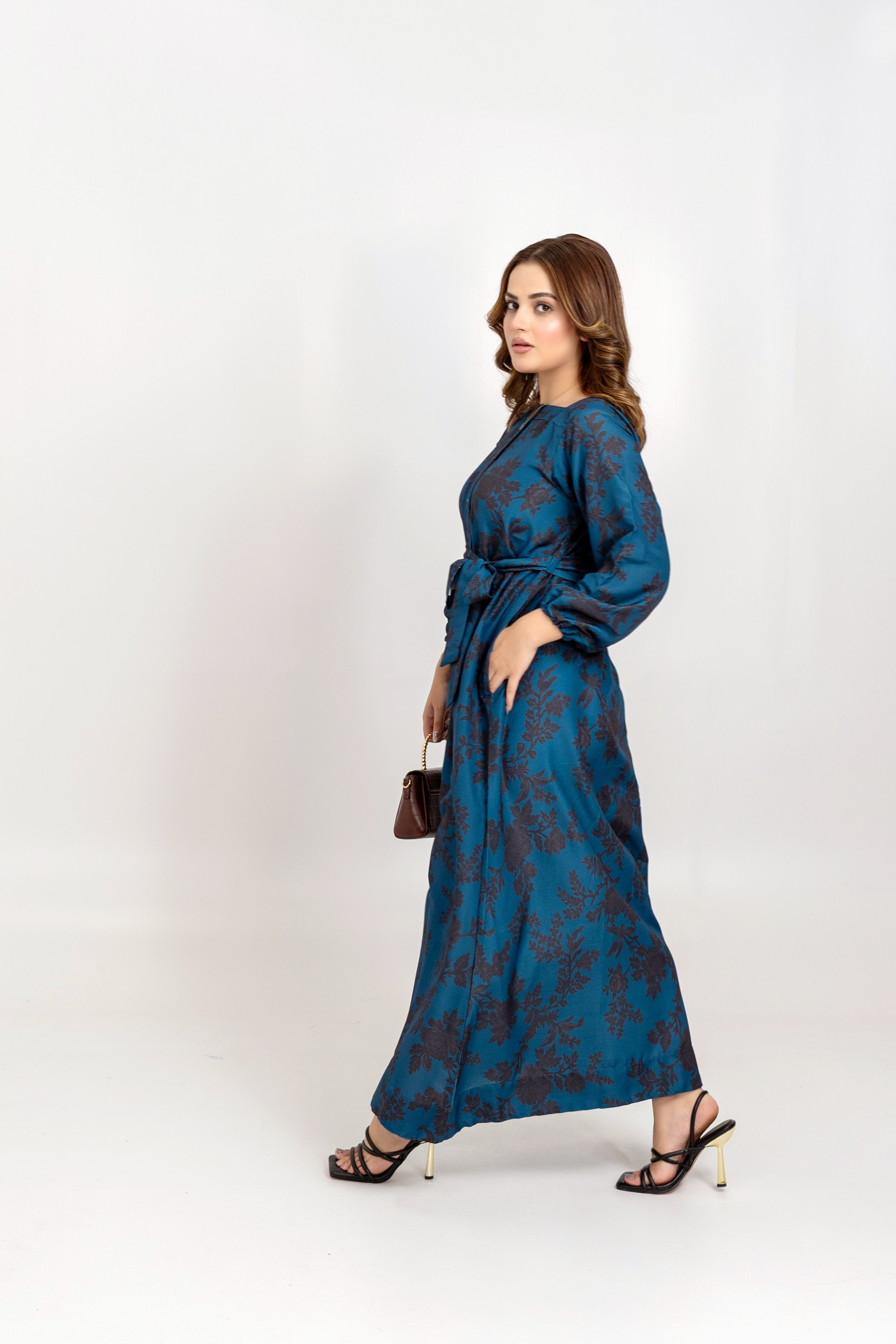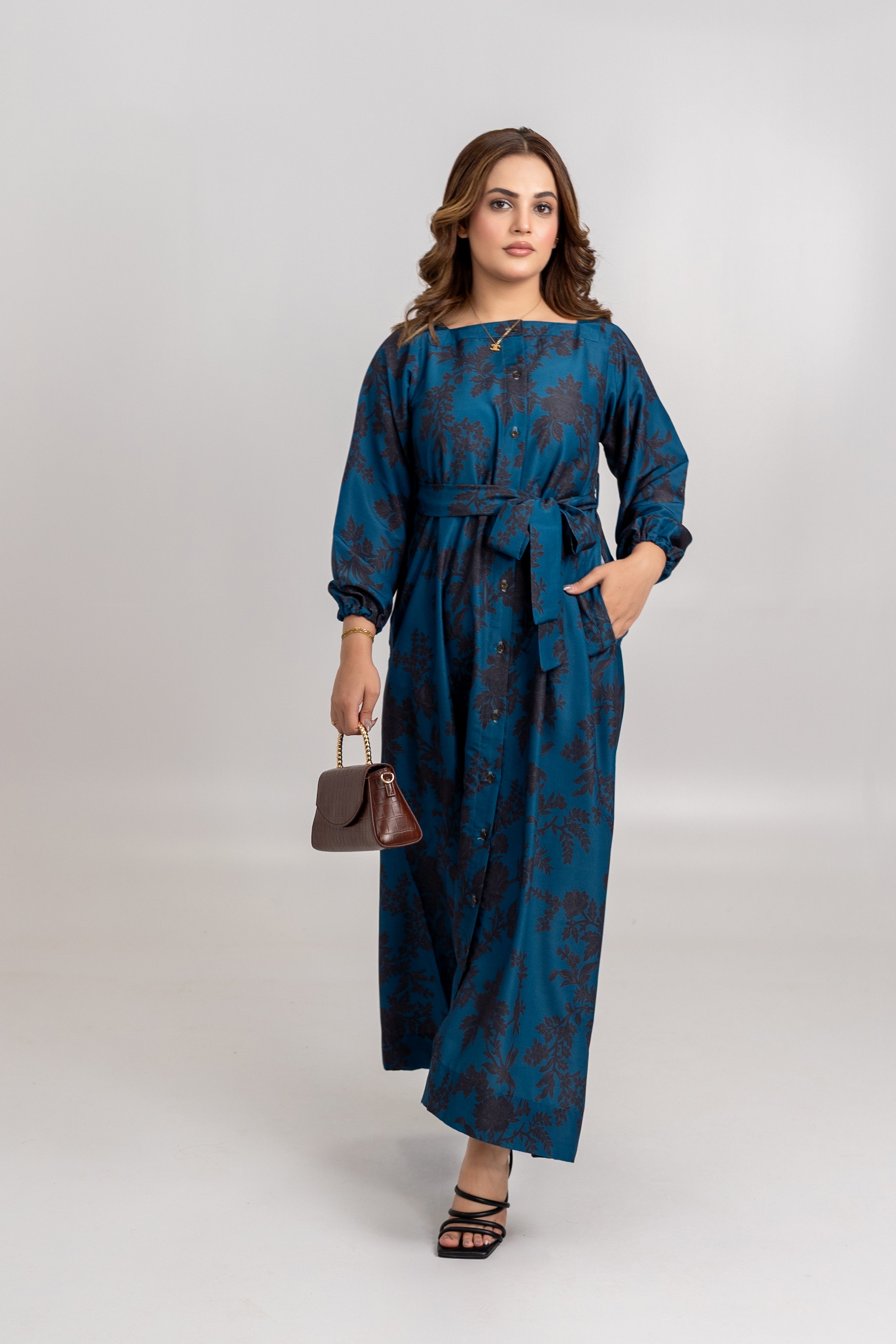 Elevate your wardrobe with this versatile maxi dress, featuring a full button-down front that allows you to wear it as a dress, open shrug, or long shirt. Crafted from luxury silk lawn blend, the fabric is lightweight, breathable, and softly textured for effortless elegance. A removable belt lets you cinch the waist for a defined silhouette or style it open for a relaxed flow. The long sleeves are finished with elasticated cuffs, ensuring comfort with a polished touch. A perfect balance of chic and versatile, this piece transitions seamlessly from day to evening wear.
